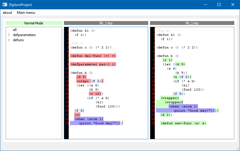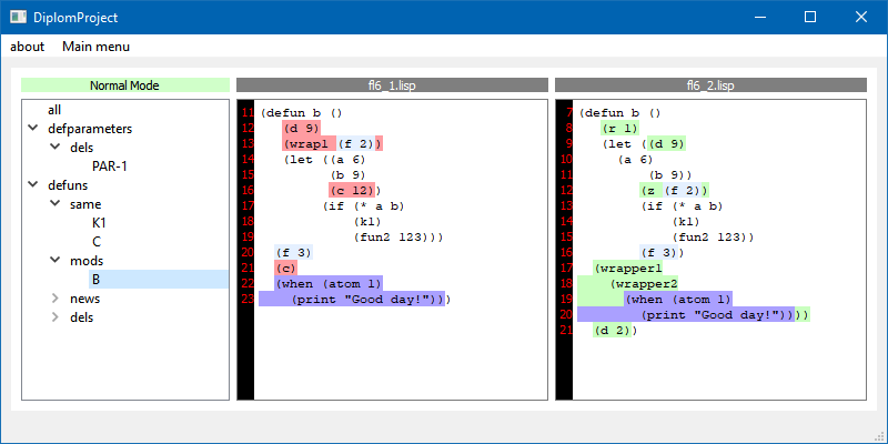 It is a project of lisp semantic diff. It was started as the main part of my bachelor's diploma project.