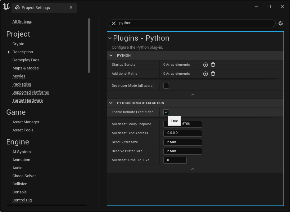 Then in the project settings, you want to make sure that “Enable Remote Execution” is enabled as well